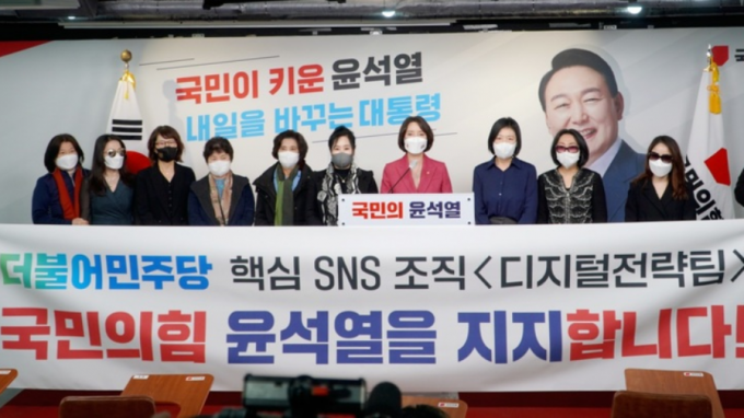 민주당 디지털전략팀 소속이라고 밝힌 이들은 이날 오후 서울 여의도 국민의힘 당사에서 '더불어민주당 핵심 SNS 조직 <디지털전략팀> 국민의힘 윤석열을 지지합니다!' 라는 문구가 적힌 현수막을 펼치고 기자회견을 가졌다.