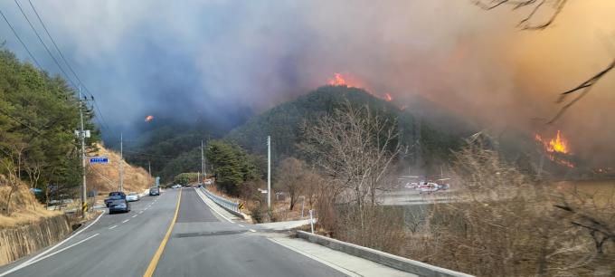 최 청장은 "야간에 바람이 약간 잦아 들었지만 나곡리·부구리 쪽 산불은 서쪽으로 더 전진했다. 바람이 남서풍에서 서북서 풍으로 방향이 바뀌어서 산불은 북진하다가 지금 남진하고 있다"고 설명했다.