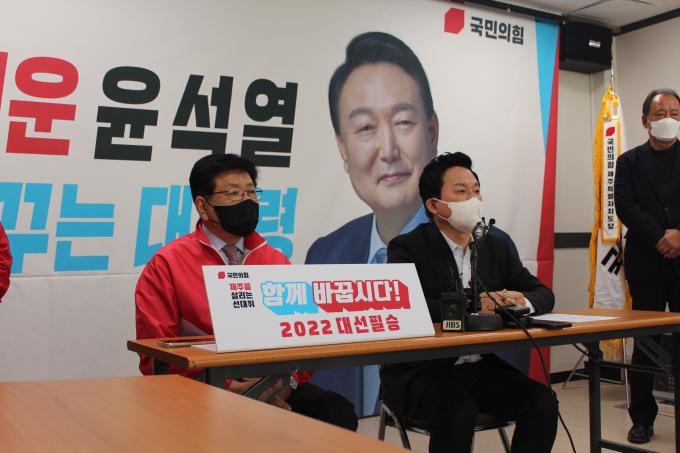 원 본부장은 6일 오전 국민의힘 제주특별자치도당에서 기자간담회를 갖고 "국민의힘 윤석열 후보를 중심으로 해서 정권교체의 열기가 아주 높다"며 이 같이 밝혔다.