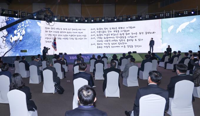 이번 기념식은 독재의 겨울을 성큼 넘어 민주주의 새봄에 대한 염원과 희망을 노래한 김기림 시인의 시에서 따온 '성큼 겨울을 뛰어 넘으리'라는 주제로 진행됐다.