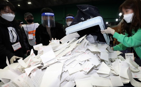 선관위는 이날 오후 8시 10분쯤 개표를 시작했다. 지상파 방송 3사 출구조사 결과 더불어민주당 이재명 후보(47.8%)와 국민의힘 윤석열 후보(48.4%)가 0.6%p차로 초접전을 벌이는 것으로 나타났다. 당선 윤곽은 10일 새벽에야 드러날 것으로 보인다.