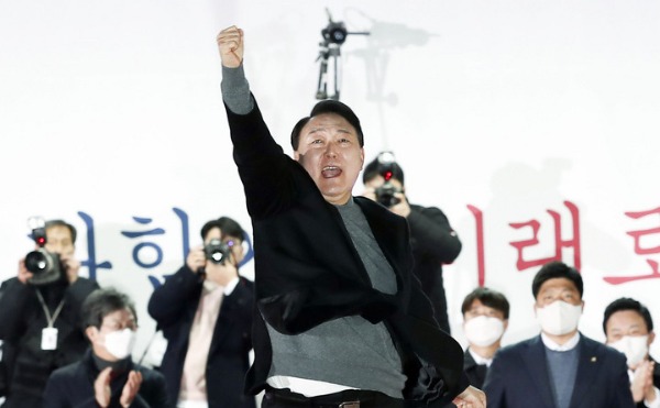 앞서 KBS는 이날 오전 2시 13분 윤 후보에게 '당선 유력'을 표시했다. 당시 득표율은 48.64%였다. 더불어민주당 이재명 후보는 47.78%를 기록해 두 후보 격차는 0.86%포인트(p)였다. 윤 후보에게 '유력' 표시가 뜨자 국민의힘 의원, 당직자들은 환호하며 '윤석열'을 연호했다.