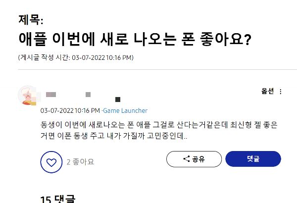 일부 스마트폰 이용자들은 중저가형 아이폰보다 두배 가까이 비싼 갤럭시 S22가 '돈 값'을 못하고 있다고까지 지적하고 있다. 삼성멤버스 커뮤니티에도 갤럭시 스마트폰만을 구매하던 소비자들이 신형 아이폰 SE로 눈을 돌리는 상황이 감지되는 실정이다.