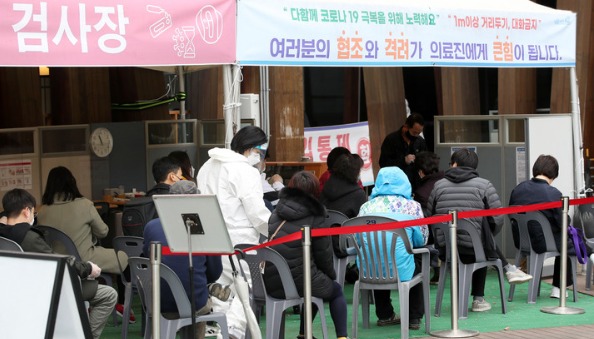 ▲지난 18일 서울 송파구보건소 선별진료소에서 시민들이 신속항원 검사를 마친 뒤 결과를 기다리고 있다. [뉴시스]
