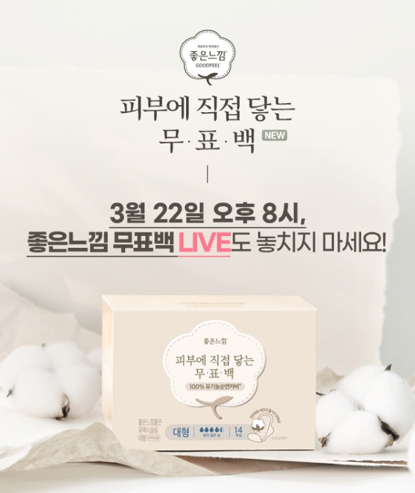 이어 G마켓은 오는 22일 화요일 저녁 8시부터 9시까지 라이브 커머스 'G라이브'를 통해 '유한킴벌리 좋은느낌 신상품 론칭 라이브'를 진행한다.