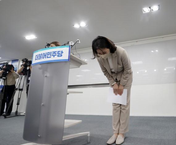 ▲ 김혜경씨가 지난달 9일 더불어민주당 서울 여의도 당사에서 기자회견을 열고 과잉 의전 논란과 관련해 사과하고 있다.   [뉴시스]