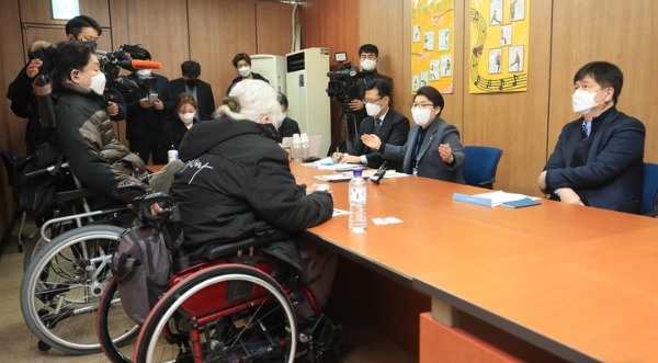 또 "박 대표나 최 회장께서 강력히 주장하는 탈시설화(장애인이 수용 시설에서 나와 지역 사회에서 같이 살도록 서비스를 제공하는 일) 지원에 대해선 장애인 단체에서도 찬반이 첨예하다"며 "다른 많은 장애인 단체들과도 소통해 한 단계 한 단계 해결해 나가도록 하겠다"고 했다.