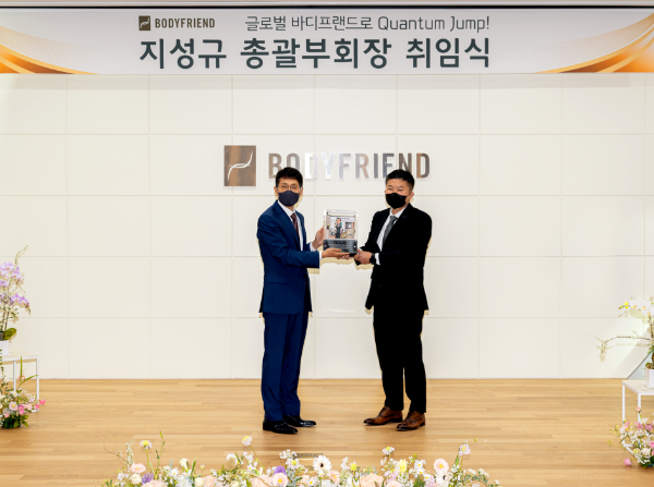 28일 바디프랜드 도곡본사 지하 1층 대강당에서 열린 취임식에서 지 총괄부회장은 임직원들에게 그간의 노고를 격려하는 한편 미래 청사진과 다섯 가지 추진과제를 제시했다.