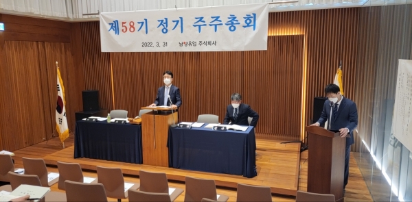31일 서울 강남구 1964빌딩에서 개최된 남양유업 정기주주총회에서는 지난해 재무제표과 배당금 승인, 이사 보수한도 승인, 감사 보수한도 승인 등의 의결사항이 모두 원안대로 통과됐다.
