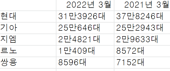 르노코리아자동차와 쌍용자동차는 그나마 선방했다.