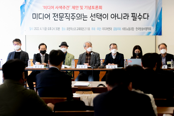 미디어연대·KBS노조·한국방송비평학회, 토론회 개최 미디어연대는 1일 '미디어 전문직주의는 선택이 아니라 필수다'라는 주제로 토론회를 개최했다. '미디어 사색주간'을 맞아 언론의 역할, 기능을 성찰하자는 취지다.
