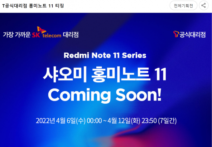LTE와 5G 모델 각각 29만9200원, 39만9300원부터 소문만 무성하던 샤오미 '레드미노트11 시리즈'가 한국 시장에서 정식으로 판매된다. 이 같은 사실은 11번가가 4일 웹사이트를 통해 공개한 '샤오미 레드미노트11 티징' 게시물을 통해 공식 노출됐다. 해당 게시물에 따르면 샤오미는 6일부터 12일까지 레드미노트11 시리즈 2종에 대한 사전 예약을 실시한다.