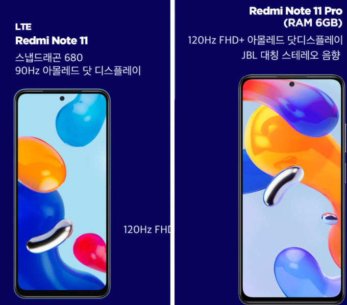 레드미노트11은 90Hz 주사율을 지원하는 아몰레드닷디스플레이이며, 레드미노트11 프로는 120Hz 주사율을 지원하는 아몰레드디스플레이다. 이들 모델에 탑재되는 AP는 각각 스냅드래곤 680과 스냅드래곤 695다.