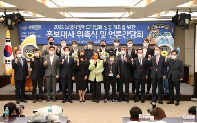 전 연령대가 고루 선호하는 연예인 선정해 홍보 극대화 2022보령해양머드박람회조직위원회(사무총장 조한영)가 6일 한국프레스센터에서 6인조 아이돌 가수 비투비를 비롯, 배우 선우용녀, 개그맨 남희석, 배우 문희경, 가수 박상민 등을 홍보대사로 위촉했다.