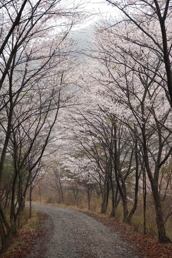 추부 IC에서 나와 군북면쪽으로 방향을 틀어 보곡산골로 접어들면 절정을 지나고 있는 벚나무가 사열하듯 서있다.긴 벚꽃의 행렬은 여느 시골길에도 흔하게 볼 수 있지만 보곡산골 벚꽃은 주변의 산세와 목가적인 풍경 때문인지 시신경을 자극할만큼 아름다웠다. 아마도 이날 바람때문에 꽃비처럼 흩날려서 인지도 모른다.