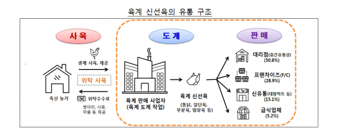 한국육계협회는 하림과 올품, 참프레, 마니커 등 대형 닭고기 제조 판매회사들이 참여한 사업자단체로, 이들 주요 구성사업자의 시장 점유율은 75.8%에 이른다.