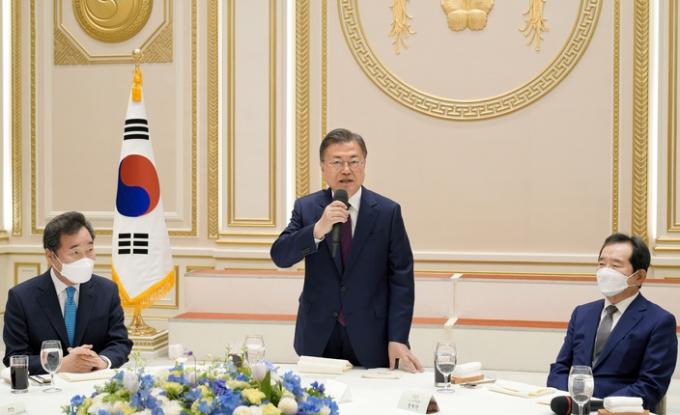 이날 오찬은 문 대통령이 현 정부에서 함께 일했던 전 국무위원을 초청한 자리였다. 이 전 총리와 정세균 전 총리, 김동연 전 경제부총리 등 50여명이 참석했다고 청와대 박경미 대변인이 서면 브리핑에서 전했다.