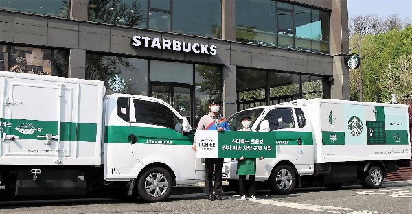 스타벅스는 이달부터 서울시청 권역 4개 매장(레스케이프호텔R점, 서울타워점, 신세계백화점5F점, 신세계백화점6F점)과 강남 권역 2개 매장(SSG마켓도곡R점, 서울고속터미널점)에 상온과 저온 통합배송이 가능한 전기 배송 차량 2대를 투입해 시범 운영한다. 향후 전국으로 대상 지역을 확대한다는 방침이다.