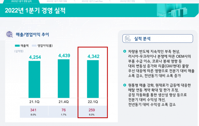 회사는 업계 예상치를 상회하는 실적을 기록하고, 6%의 영업마진을 낸 두 가지 배경에 대해 소개했다. △테슬라 전기차 공급 등 원통형 배터리 수요 견조 △메탈 등 주요 원자재 판가 연동을 통한 시장 영향 최소화 등이다.