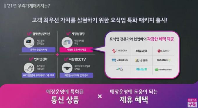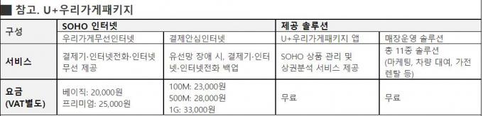 LG유플러스는 지난 해 결제기, CCTV, 인터넷, IPTV 등 SOHO 전용 통신상품과 세무·매출관리 등 솔루션을 함께 제공하는 'U+우리가게패키지'를 선보인 바 있다.