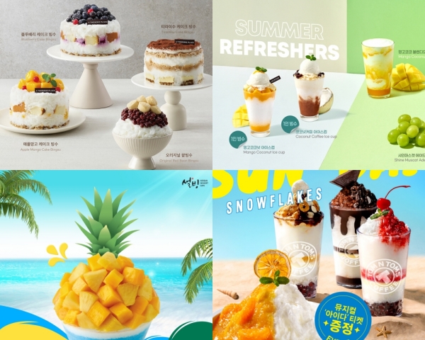 빙수 카페 대표주자인 설빙은 여름을 겨냥해 '아임파인망고설빙'을 처음 선보인다. 파인애플과 망고 큐브 과육에 망고 요거트 아이스크림과 시리얼이 얹어진 빙수다. 매년 여름시즌 한정메뉴로 선보이는 메론빙수도 판매한다.