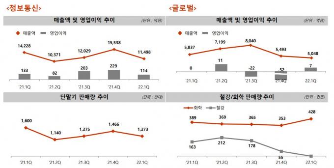 '사업형 투자회사'로 전환 가속화…투자 포트폴리오 다양화 SK네트웍스가 9일 실적 공시를 통해 1분기 연결 기준 매출 2조5007억 원, 영업이익 433억 원을 기록했다고 밝혔다. SK네트웍스는 "글로벌 반도체 수급 이슈에 따른 단말기 영향으로 매출은 전년에 비해 하락했지만, 렌탈 자회사 실적이 늘고 호텔 영업력이 회복하며 영업이익이 크게 늘었다"고 설명했다.