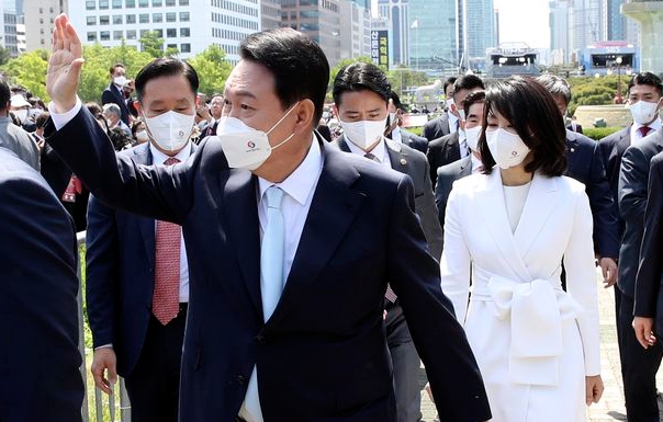 尹, 文내외와 朴 환송 후 용산 집무실로 이동 20대 대통령 취임식이 10일 오전 국회에서 치러졌다.