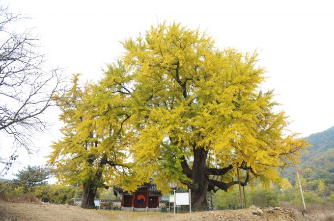 세종시 첫 국가지정문화재로 나무주변 역사공원 조성 500여 년 동안 한 자리를 지켜온 암수 한 쌍의 황금빛 은행나무가 12일 국가지정문화재 천연기념물로 지정된다.