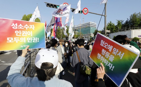 행사에 참석한 이들은 대통령 집무실을 향해 "우리 행진이 세상을 바꾼다. 차별금지법 제정하라" "우리의 외침이 시대를 만든다. 성소수자 인권 교육 실시하라" 등의 구호를 외쳤다.