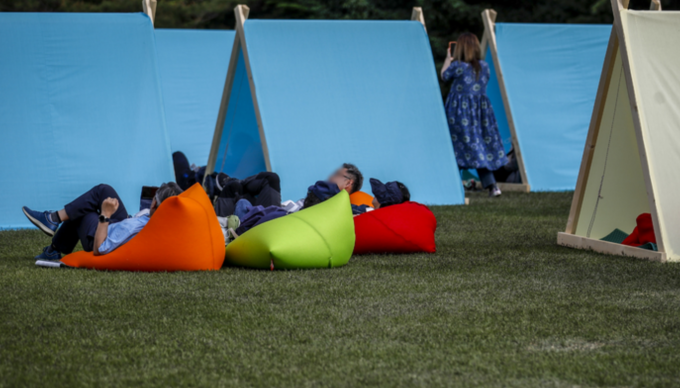 14일 춘추관 앞 잔디밭에는 형형색색의 텐트가 깔렸다. 이곳에서 '눕멍(누워서 멍 때리는)'하는 시민들을 쉽게 볼 수 있었다. 춘추관은 과거 역대 대통령 기자회견 장소이자 청와대 출입 기자들의 근무처였다.