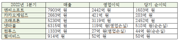 1분기 실적…기존 흥행 게임 유무에 희비 엇갈려