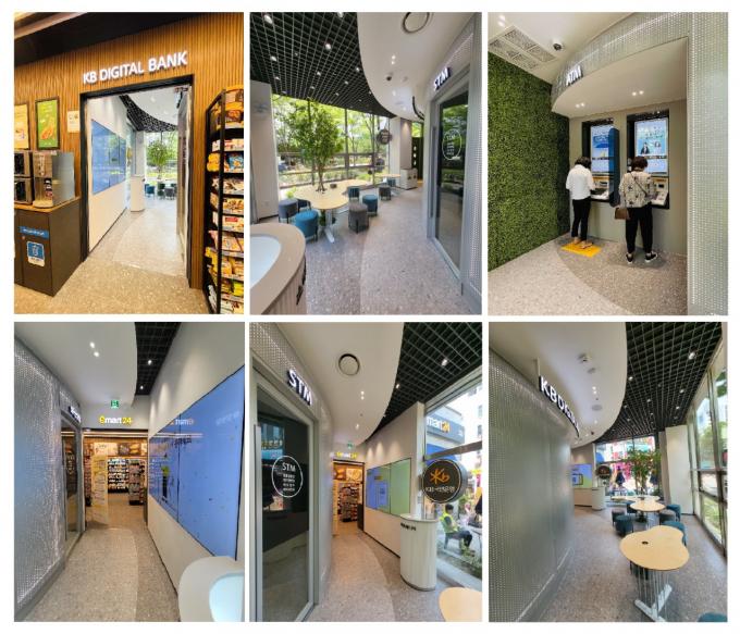 이마트24는 KB국민은행과 손잡고 23일 충정북도 청주시 분평동에 금융 전문 편의점 1호점을 오픈한다. 이 곳은 20여 평의 편의점과 10여 평의 KB디지털뱅크가 연결된 곳으로 편의점에서 상품 구매를 하면서 은행 업무까지 한 번에 해결할 수 있는 신개념 하이브리드 매장이다.