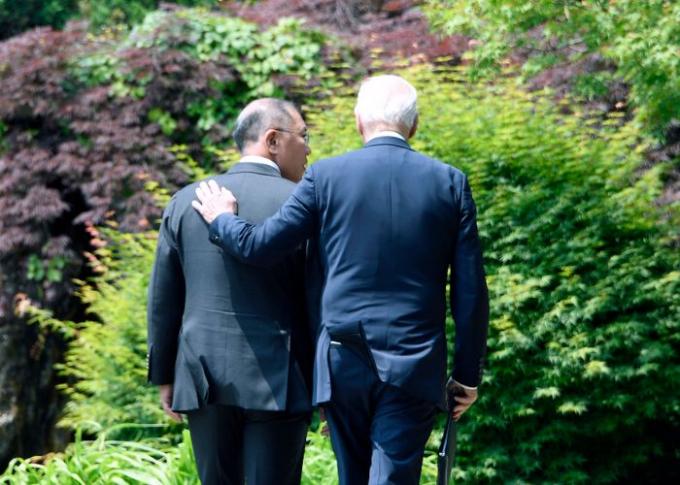 22일 바이든 대통령과 정의선 현대차그룹 회장의 '50분 회담'은 전 세계의 이목을 집중시켰다. 당초 예정된 10여 분의 면담 시간을 훌쩍 넘겼다. 바이든 대통령이 방한 중 기업 총수와 단독 면담을 한 것은 정 회장이 처음이다.