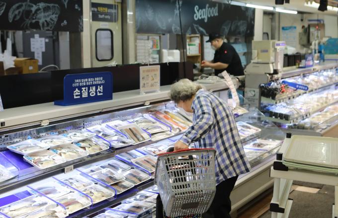 ▲ 서울 중구 봉래동 롯데마트 서울역점에서 한 손님이 생선을 고르고 있다. [롯데쇼핑 제공]