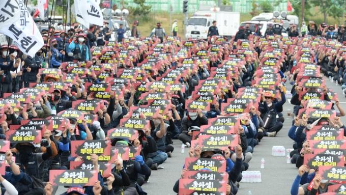 정부는 이날부터 총파업 종료 시까지 대체수송 화물차의 고속도로 통행료를 면제·환불할 예정이다. 대상은 국토부가 지정한 대체수송 차량으로 식별표지와 통행료 면제확인증을 발급받은 '10t 이상 견인차·자가용 유상운송 허가 차량'이다.