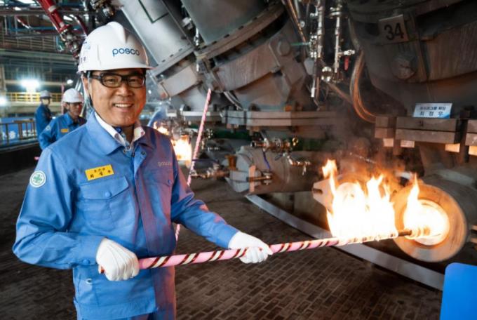포스코는 10일 광양제철소에서 최정우 포스코그룹 회장을 비롯해 김학동 포스코 부회장, 한성희 포스코건설 사장, 민경준 포스코케미칼 사장, 정덕균 포스코ICT 사장 등 그룹사 대표 및 임직원들이 참석한 가운데 광양제철소 4고로 화입식을 개최했다.