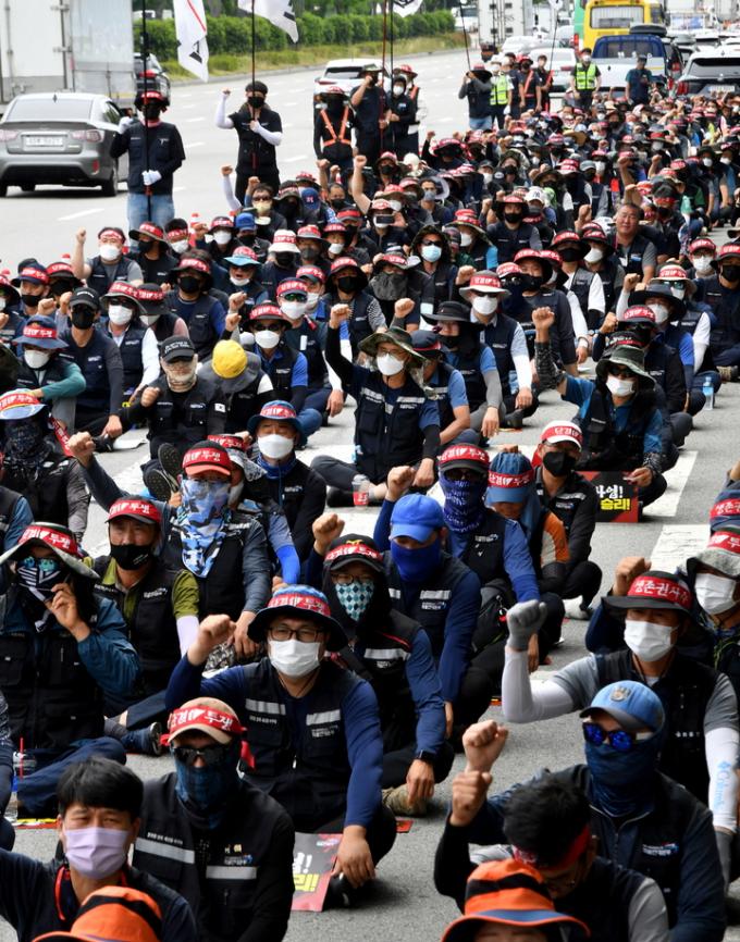 11일 국토교통부에 따르면 화물연대 조합원 약 4200명이 전날부터 이날 새벽까지 전국에서 철야 대기하며 파업을 이어가고 있다. 국토부는 이들을 포함해 전체 조합원 약 2만2000명 중 33%에 해당하는 약 7350명이 파업에 참여한 것으로 추산했다.