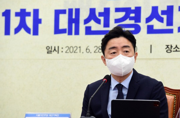 ▲ 더불어민주당 강훈식 의원이 지난해 6월 28일 국회에서 열린 제1차 대선경선기획단 회의에서 발언하고 있다. [뉴시스]