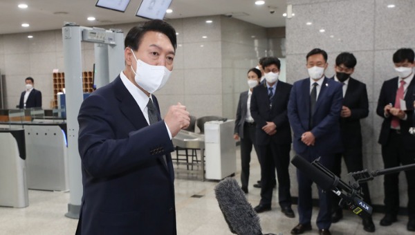 ▲ 윤석열 대통령이 지난 17일 오전 용산 대통령실로 출근하며 취재진 질문에 답하고 있다. [뉴시스]