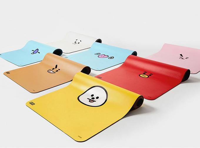 ▲ 젝시믹스 글로벌 캐릭터 'BT21' 홈트레이닝 에디션 중 요가매트 제품 7종. [브랜드엑스코퍼레이션 제공]