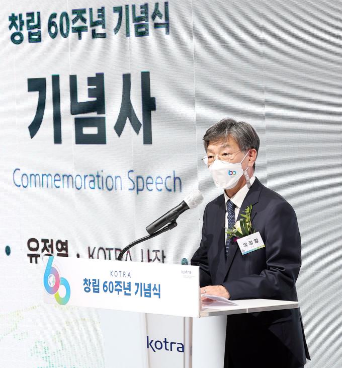 유정열 KOTRA 사장은 기념사에서 "전 세계적인 인플레이션과 저성장 기조로 불확실성이 크지만, 디지털 및 저탄소 경제로의 전환, 글로벌 공급망 재편 등 새로운 패러다임 속에 비즈니스 기회와 희망이 보인다"며 "KOTRA는 창립 60주년을 맞아 '세계와 미래를 연결하는 대한민국 글로벌 비즈니스 플랫폼'이라는 신 비전을 수립하고 국가대표 무역·투자 지원기관으로서 국민경제에 이바지하고 무역·투자의 미래를 선도하는 플랫폼으로 거듭나겠다"고 강조했다.