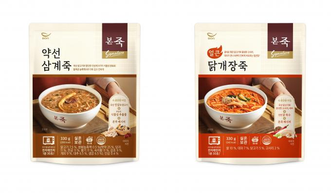 ▲ 보양·별미 가정간편식(HMR) '약선 삼계죽·얼큰 닭개장죽' 2종. [순수본 제공]
