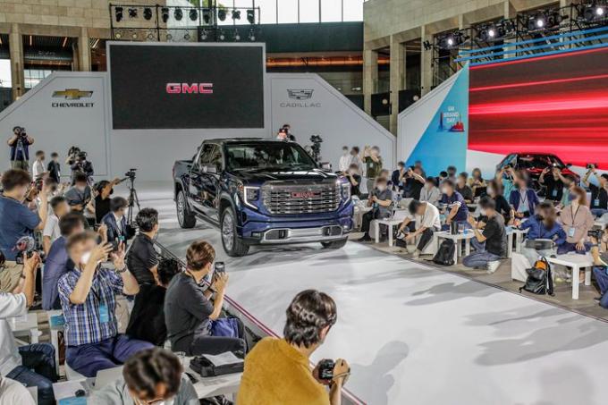이날 한국GM은 GMC의 한국 시장 론칭을 공식화하고, 대형 픽업트럭인 '시에라 드날리' 모델을 공개했다. 시에라 드날리는 연내 출시 예정이다. 판매는 100% 온라인으로 이뤄질 예정이다.