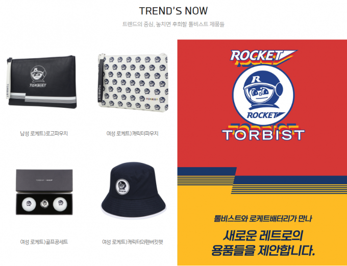 런칭 후 7일간 적립금 두 배 프로모션도 진행 에스엔에이(대표 김기명·S&A)의 골프웨어 브랜드 톨비스트가 '로케트배터리'와 손잡고 협업 상품을 선보인다. 톨비스트의 이번 컬렉션은 골프공세트, 버킷햇, 파우치, 양말 등으로 구성돼 있다.