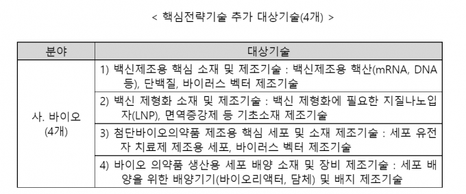 ▲ 핵심전략기술 추가 바이오 기술. [산업부 제공]