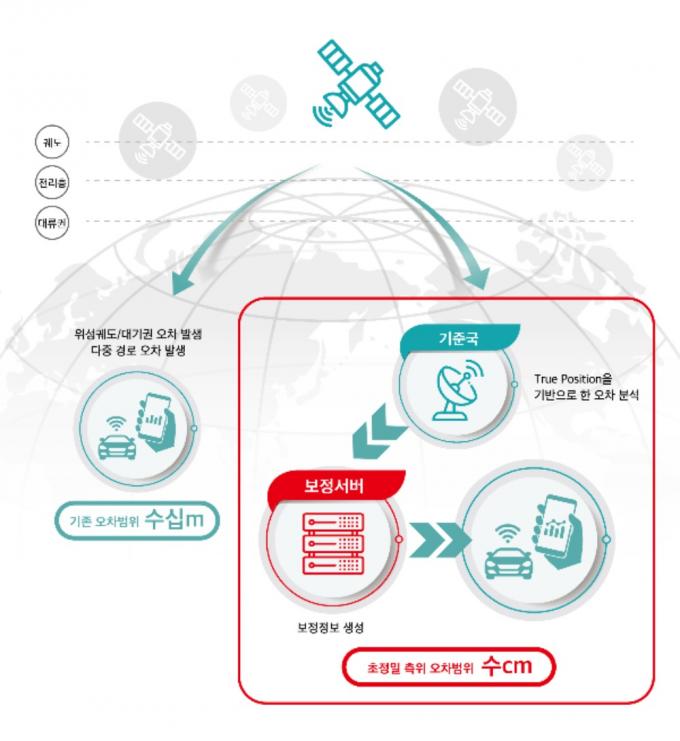 초정밀 측위 서비스는 GPS로 제공되던 위치 서비스의 오차를 줄이기 위해 추진하는 것으로 위성 데이터에서 발생하는 최대 수십 미터(m)의 오차를 센티미터(cm)단위까지 줄여 정확한 정보를 제공할 수 있다.