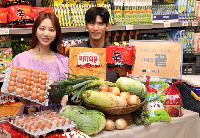이마트의 '상시 최저가' 첫 단계는 '40대 필수상품' 가격 인하다. 온·오프라인 구분 없이 이마트 매장 및 SSG닷컴 이마트몰(점포배송상품 기준)에서 동일하게 진행된다. 40대 필수상품은 우유 김치 등 가공식품 17개, 계란 양파 등 신선식품 7개, 화장지 비누 등 일상용품 16개로 이뤄졌다.