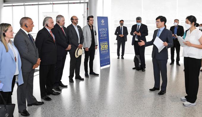 현대차그룹도 한국을 방문한 코스타리카와 온두라스, 과테말라, 에콰도르, 파라과이, 엘살바도르, 브라질, 도미니카공화국, 콜롬비아 등 중남미 주요 10여개국 장·차관급 고위 인사와 각국 대사 등 23명을 6일 현대차 브랜드 체험관 '현대모터스튜디오 부산'으로 초청해 부산의 경쟁력을 설명하고 유치 지지를 요청했다.