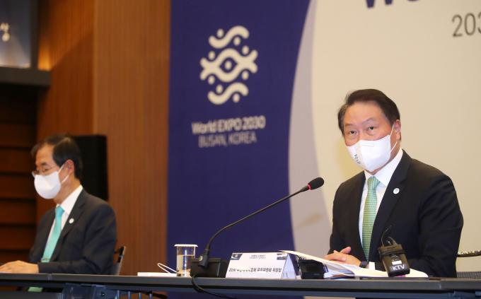 민·관 합동 유치위원회는 국무총리 직속으로 한 총리와 최 회장이 공동 위원장을 맡는다. 14개 정부 부처 장관과 박형준 부산시장, 이재용 삼성전자 부회장, 정의선 현대자동차 회장, 구광모 LG 회장, 신동빈 롯데그룹 회장, 손경식 CJ그룹 회장이 모두 참여한다.