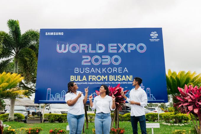 삼성전자는 나우소리 국제공항을 비롯, 피지 중앙우체국, PIF 개최장소인 수바 그랜드 퍼시픽 호텔 등 주요 건물 옥외 광고와 빅토리아 퍼레이드에 설치된 대형 전광판 광고로 '2030 부산세계박람회' 유치를 기원했다. 관광객들의 주요 관문인 난디 국제공항 주변에도 옥외 광고를 진행, 관광객들에게 부산엑스포 유치 활동을 알리고 있다.